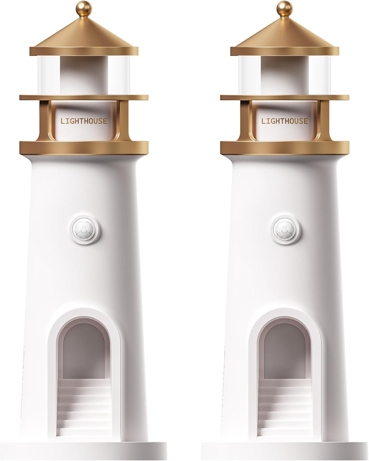 LED Cordless Night Lights Set of 2, WirelessPortable Motion Sensor Moon LighthouseLamp, Rechargable Battery Powered TableLamps for Kids, Children, Gifts, BedroomNursery, Decor, 9.6 inch
